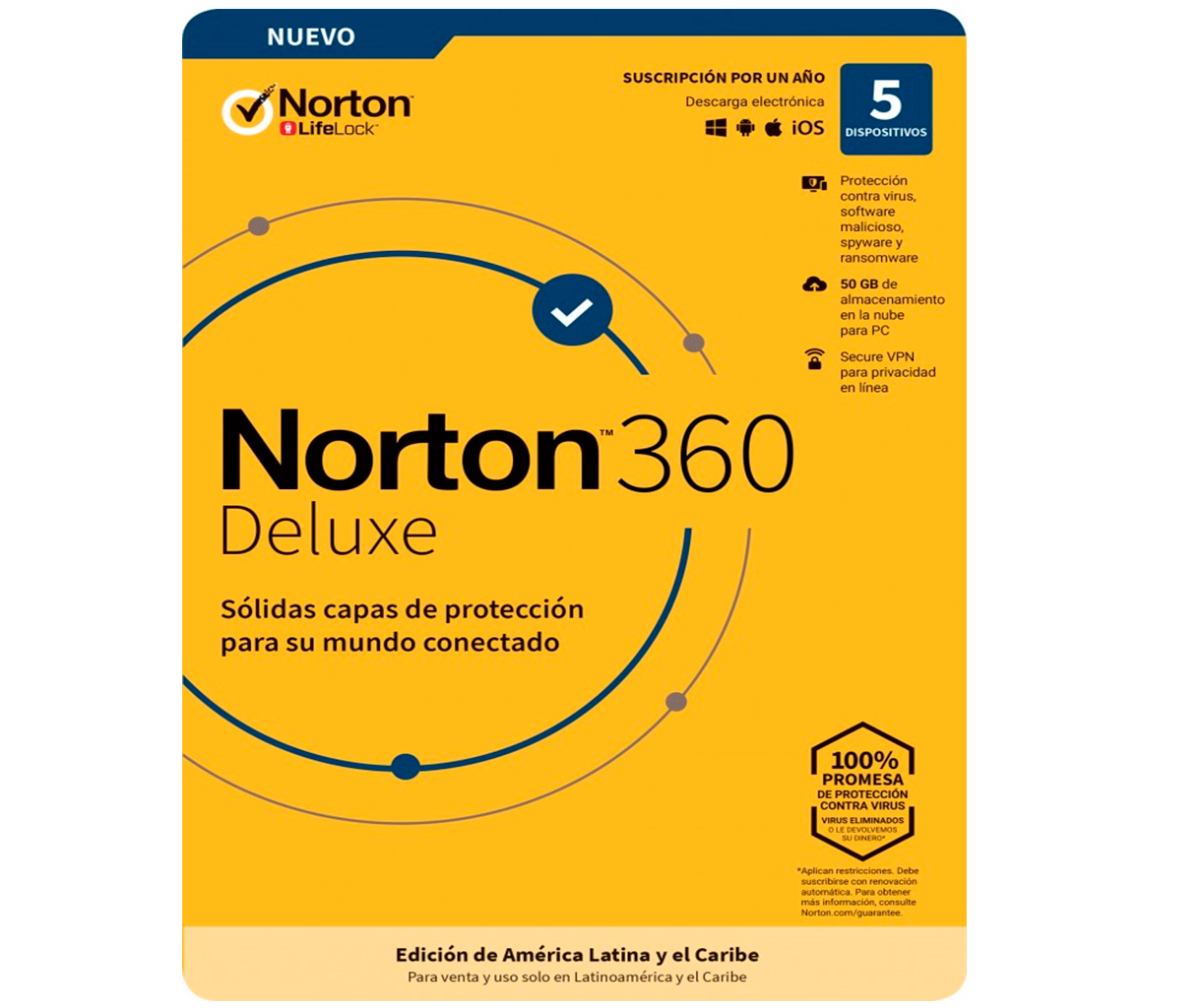 O Norton 360 Deluxe oferece uma solução completa de segurança online, combinando proteção contra ameaças, privacidade e controlo parental, tudo numa única licença para até 5 dispositivos.